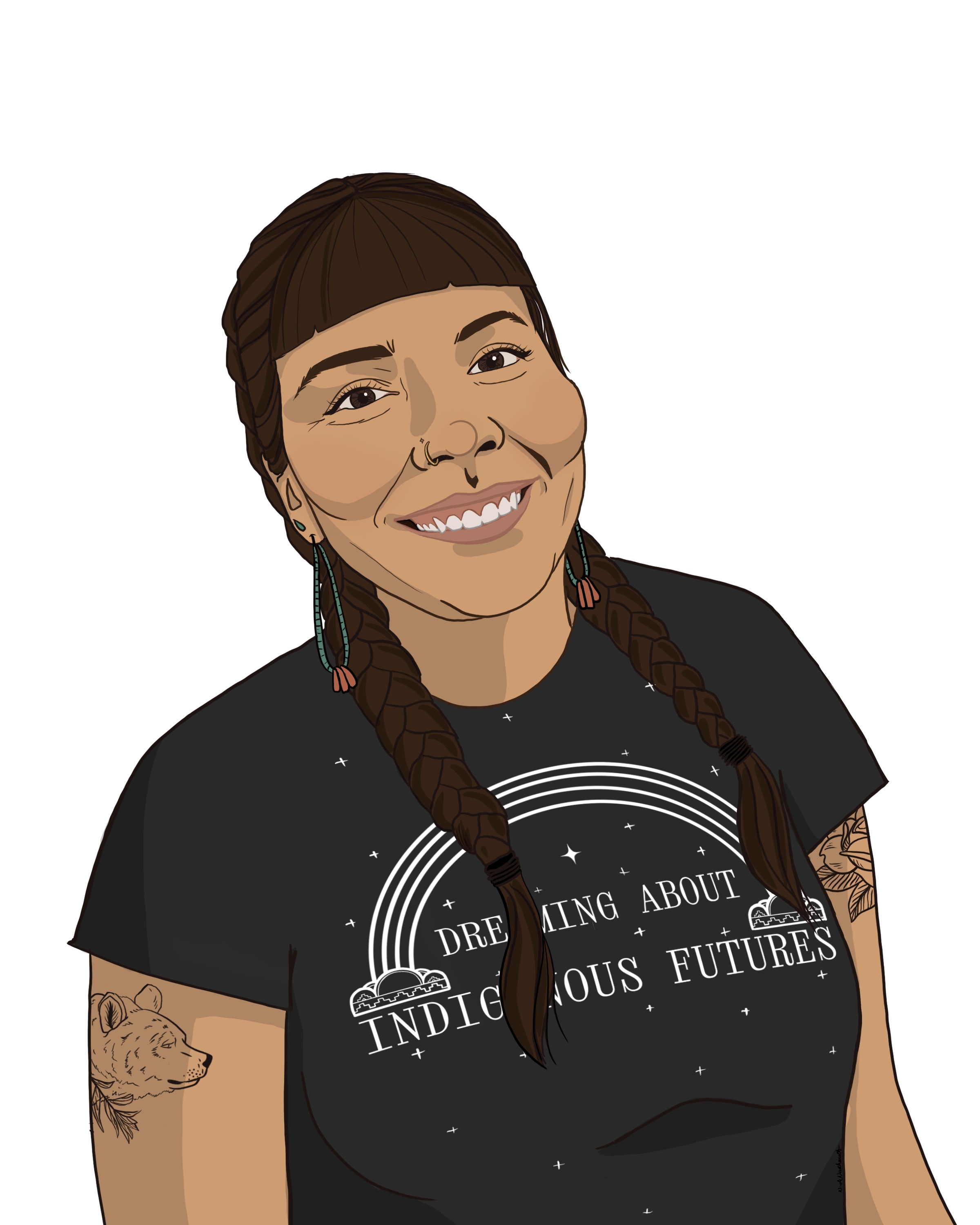 Her multi-disciplinary practice centers and uplifts Indigenous worldviews and voices in order to contribute to strong and vibrant Indigenous futures. She has illustrated the books, When We Are Kind / Nihá’ádaahwiinít’íigo (Orca 2020), Braiding Sweetgrass for Young Adults (Lerner 2022), What Your Ribbon Skirt Means to Me: Deb Haaland’s Historic Inauguration ( Christy Ottaviano Books 2023) and Circle of Love (Heartdrum 2024). She received her MFA from OCAD University in Toronto, Ontario, and a BFA from the University of Victoria.